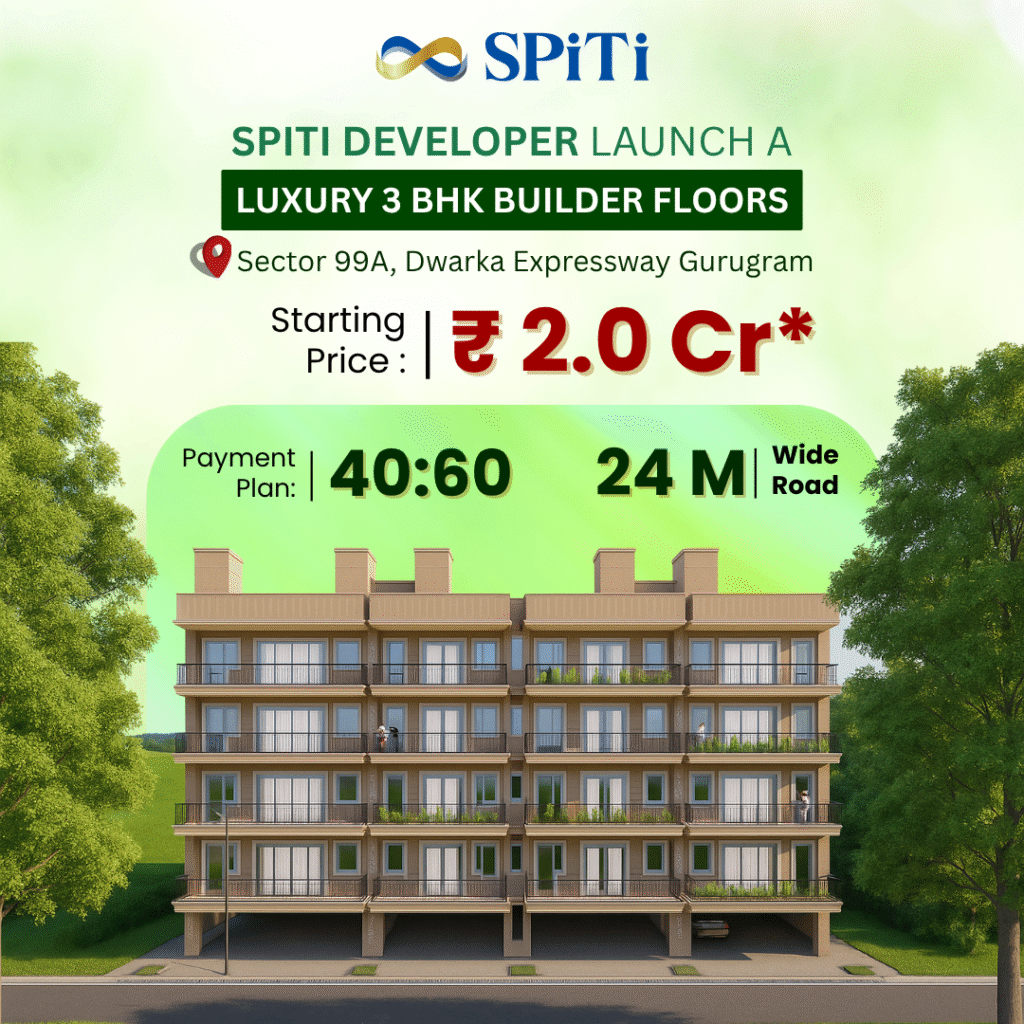 Spiti Developer, a trusted name in the real estate industry, is proud to announce the launch of its latest residential offering –Spiti Builder Floors in Sector 99A, Dwarka Expressway, Gurugram. Designed for modern living, this project combines luxury, comfort, and smart space utilization in one of the fastest-growing micro-markets of Gurugram. Each home is thoughtfully planned with premium finishes, spacious interiors, modular kitchens, and private balconies, making it ideal for families looking for independent yet community living. With a focus on quality construction and timely delivery, Spiti Developer ensures an unmatched lifestyle experience in a gated and secure environment. Whether you are a homebuyer or investor, these Spiti Builder Floors offer exceptional value and long-term appreciation potential in the booming real estate market of Dwarka Expressway.